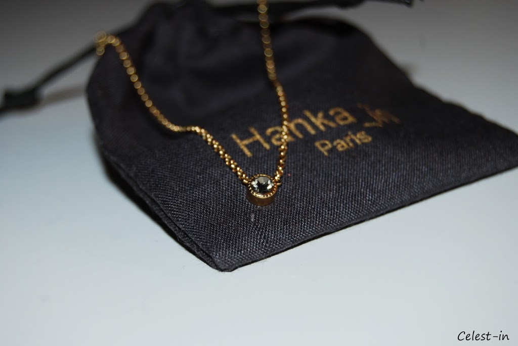 Mon choix c’est porté sur une fine chaîne or et une pierre semi-précieuse grise.