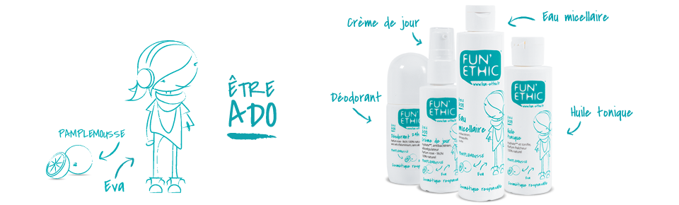 – Pour les ados, le choix s’est porté sur le pamplemousse pour ses vertus antimicrobiennes, astringentes et rafraîchissantes.