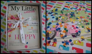Pleine de confettis, Youhou! les derniers que j’ai découvert dans un colis cadeau ça devait être en primaire, donc un petit retour en enfance colorée et heureuse ;) moi ça me met de suite de bonne humeur pour les prochains jours, pas vous?
