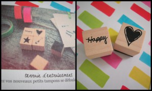 – Une série de petits tampons « bonheur » pour embellir nos courriers (accompagnée d’une petite carte pour s’entraîner)