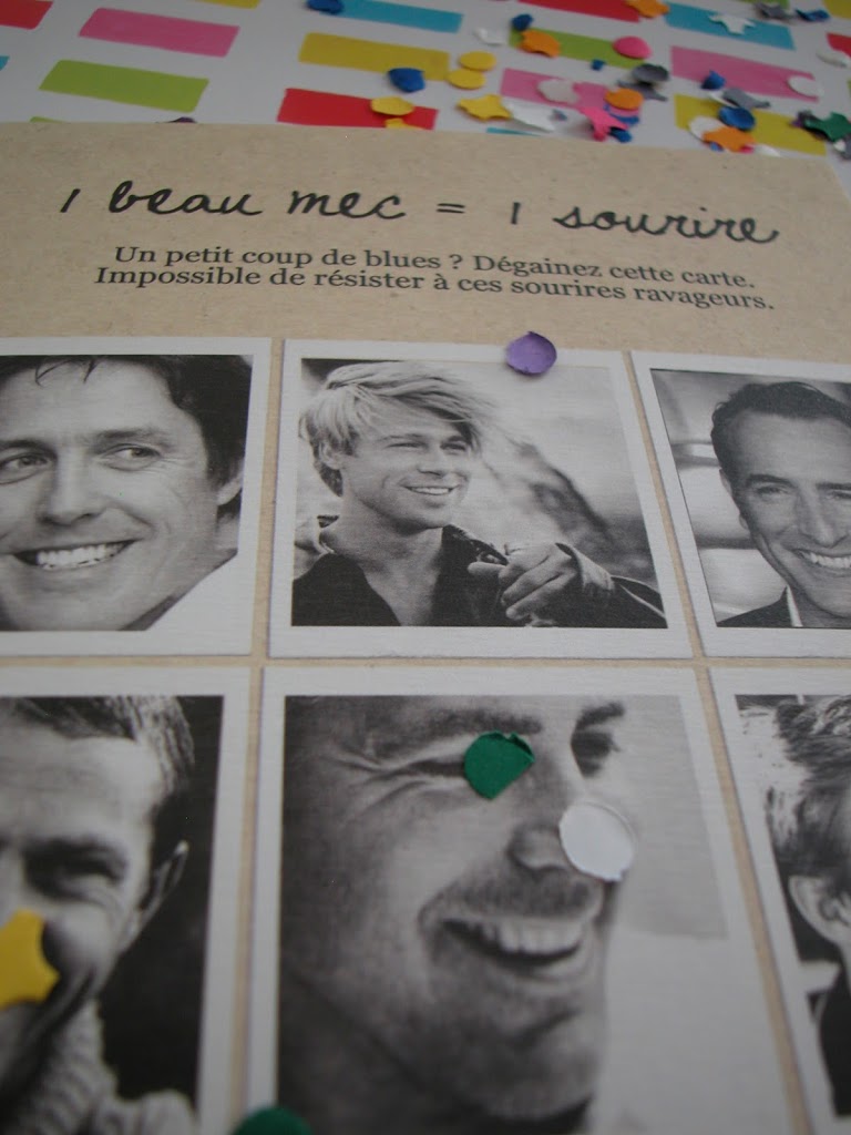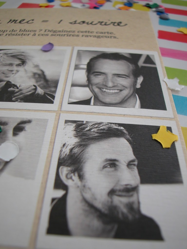 – Une carte avec quelques clichés de beaux gosses au sourire ravageur ! à ressortir lorsque le moral est à O …