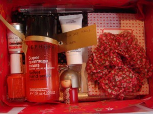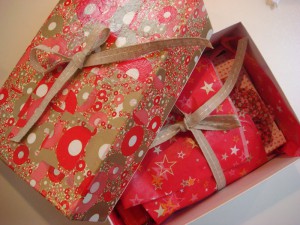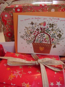 – le tout, accompagné d’une jolie carte (de présentation de soi-même et/ou d’une description du contenu de la boîte)